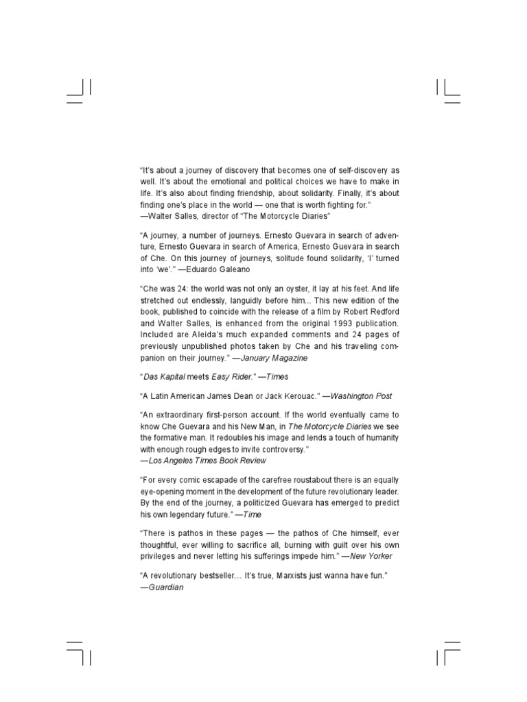 Motorcycle diaries essay. This is the case for the book The Motorcycle Diaries by Ernesto Che Guevara and Keatss sonnet On first looking into Chapmans Homer. In some way transformative. South America Peru Che Guevara Pages.