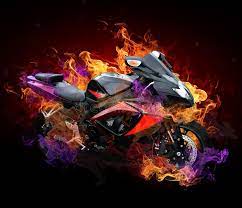 You cant buy your own item. Black silhouette of burning motorcycle on fire exploding sparks. Engines with high power output are more capable of doing this.