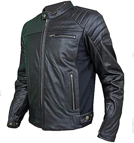BLACK BLUE WHITE PREXPORT LEATHER BIKER JACKET WITH REMOVABLE CE ARMOUR 42 IN.